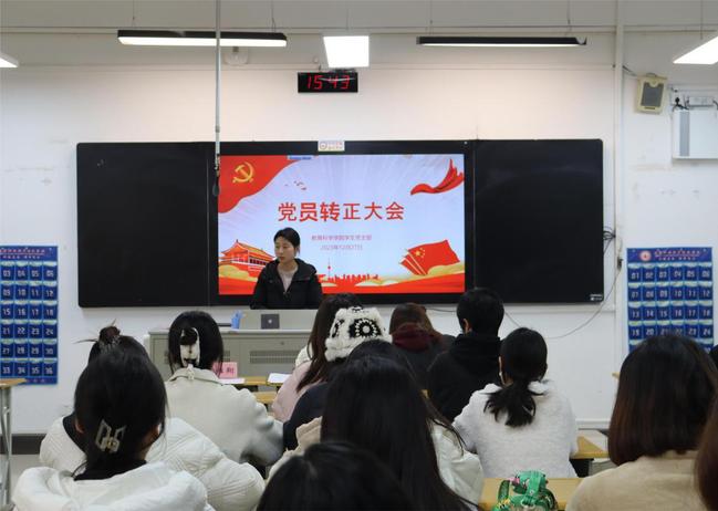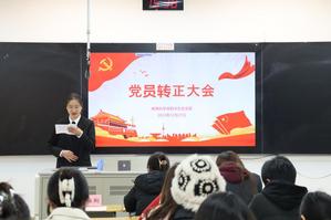 会议最后,学生第二党支部书记江敏发表总结讲话,首先向各位转正的党员给予肯定和表示祝贺,同时提出了三点希望和要求。一是希望十名党员转正后,不仅要组织上入党,更要在思想上入党。在今后走上工作岗位,要牢记中国共产党的身份,发挥党员先锋模范作用。二是加强学习,提升党性修养。以转正作为崭新起点,更加严格要求自己,加强对党的理论和路线方针政策的学习,党性修养永无止境。勤于学习,要勤于向优秀的党员同志学习,向先进模范看齐。三是不忘初心,牢记使命,坚定对中国共产党的信仰,做一个纯粹的共产党人。扎根基层,服务群众,发挥党员的作用,不断增强服务意识,提高服务能力,甘为人梯,乐为基石。不辜负学院和老师的培养,带着感恩之心,投身到为人民服务的实践中去!