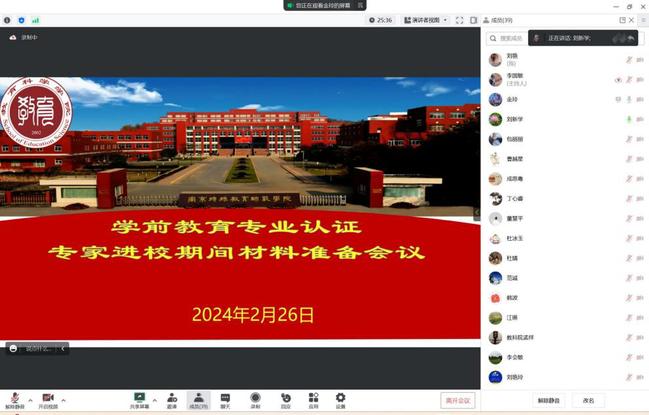 2月26日晚,教科院在线上召开学前教育师范类专业认证专家进校考查工作部署推进会,教科院领导班子及全体教师参加会议,会议由徐莉副院长主持。