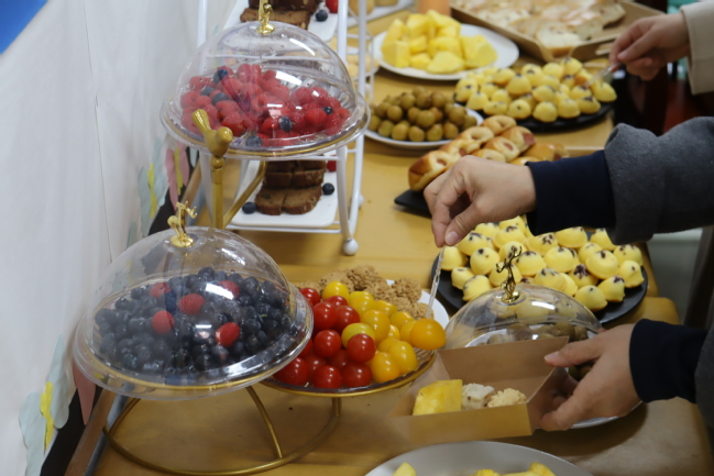 活动邀请了专业花艺师现场授课。在插花环节中,花艺师为大家介绍了花卉的基本知识,包括花卉的种类、色彩搭配和养护技巧等。在花艺老师的指导下,女教师们结合各自手中的花材特点和审美情趣,从鲜花的取材、剪叶、布局、包装开始,用自己的创意和灵感制作出了一件件错落有致、生机盎然、创意十足的的花艺作品,令人赏心悦目,充分展现了学院女教工良好的精神风貌和对生活的热爱。活动还精心准备了甜点和水果,各种美食色彩缤纷、口感丰富。大家一边享受美食,一边畅谈工作和生活中的点滴,现场气氛非常热烈。女教职工在感受美、欣赏美、创造美的过程中度过了一个愉快的“三八”国际妇女节。