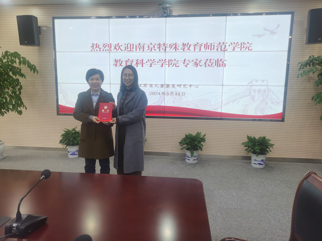 庆祖杰副理事长表示,选派教师前往省儿康中心挂职已成为省残联党组和南京特师党委战略合作的一项常规工作,在过去的两年里,教科院充分运用挂职干部这个桥梁纽带,使残联和特师两家单位联系更加紧密。他就今后的工作提出三点建议:首先,作为特殊教育工作者,使命在肩,要以开阔的视野、奋发有为的斗志、敢闯敢干敢首创的精神,共同应对特殊教育发展新阶段出现的挑战;其次,要充分发挥双方协作机制的作用,在教学研究、社会实践、资源共享等方面建立长期稳定的合作机制;最后,要求挂职干部尽快融入中心,建立紧密、畅通的交流渠道,用良好的素养和过硬的作风为“双赢”添砖加瓦,共同推动江苏省残疾人事业高质量发展。(文/图 张宇 审核/吴月华 刘新学)