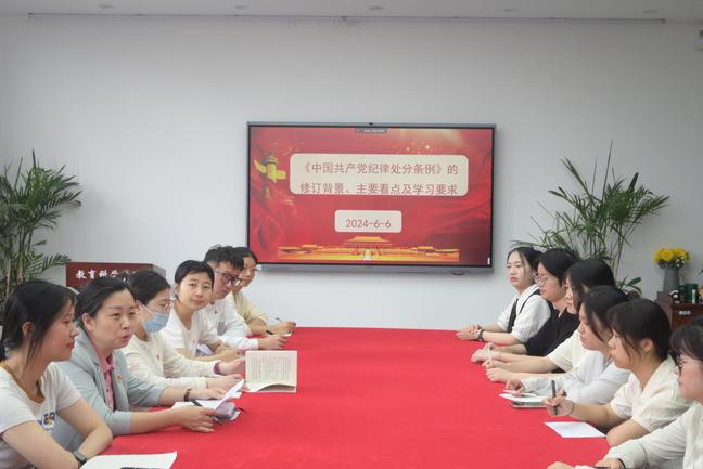 6月6日上午,德赢VWIN召开毕业班“最后一节党课”及党员座谈会,学院党总支书记吴月华给全体毕业生党员上专题党课。座谈会上吴书记首先对毕业生党员表示了肯定与赞许,同时也提出要求,希望毕业生党员能率先垂范,传承博爱精神,铭记学校教诲,不因为毕业放松对自己的要求,为社会发展贡献自己的力量。随后的党课,吴月华书记围绕“严守党纪,砥砺前行”为同学们讲授毕业前最后一节党课。吴书记联系实际,从修订背景、主要看点及学习要求三方面,对《中国共产党纪律处分条例》进行了仔细解读,并通过实际案例带领毕业生党员深入学习党的纪律要求,引导毕业生党员全面深入学习,增强遵规守纪自觉。