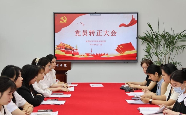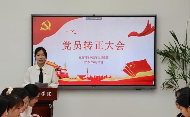 2024年6月17日,德赢VWIN学生党支部召开预备党员转正大会,讨论预备党员的转正事宜。本次会议由刘智慧老师主持,出席会议的有教科院党总支书记吴月华老师、院党总支副书记胡芳老师、学生第一党支部书记汪亮巧老师、学生第二党支部书记江敏老师、全体党员老师和全体党员学生。