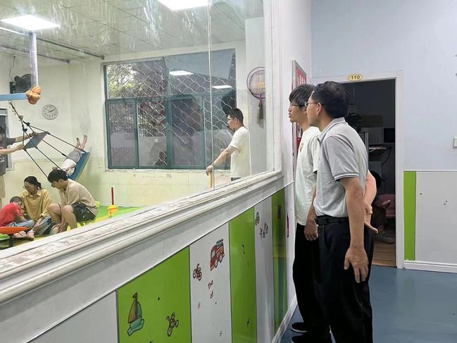 在爱迪儿童康复中心负责人李忠和王彦军老师的陪同下,刘新学院长一行首先参观了感统训练室、个训室等专业康复训练区域。现场,儿童在老师和专业人员的引导下进行康复训练,他们的专注与努力让在场的每一位老师深受触动。刘院长详细询问了康复中心的日常运作和儿童康复效果。随后,双方进行了深入的座谈交流。爱迪儿童康复中心负责人详细介绍了康复机构的发展历程、特色服务和未来愿景。他强调,康复中心始终坚持以儿童为中心,致力于为特殊儿童提供全方位的康复服务,帮助他们更好地融入社会。刘新院长对康复中心的成绩表示赞赏,他提出学院与爱迪儿童康复中心在实习实训、人才培养等方面有着广阔的合作空间,未来双方可以加强合作,共同探索特殊教育领域的创新发展,为培养更多优秀的特殊教育人才贡献力量。