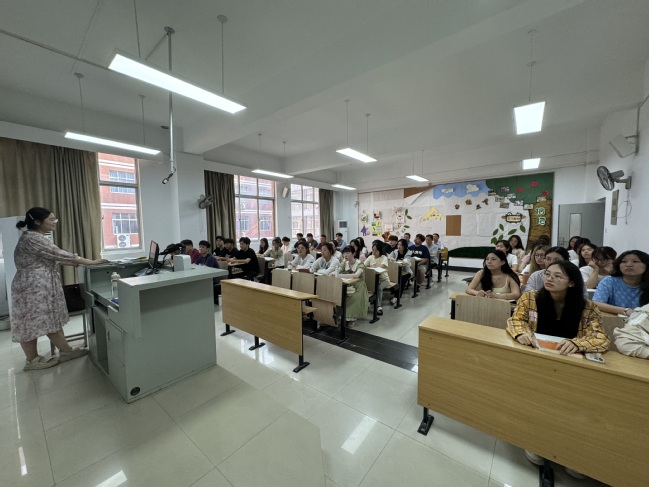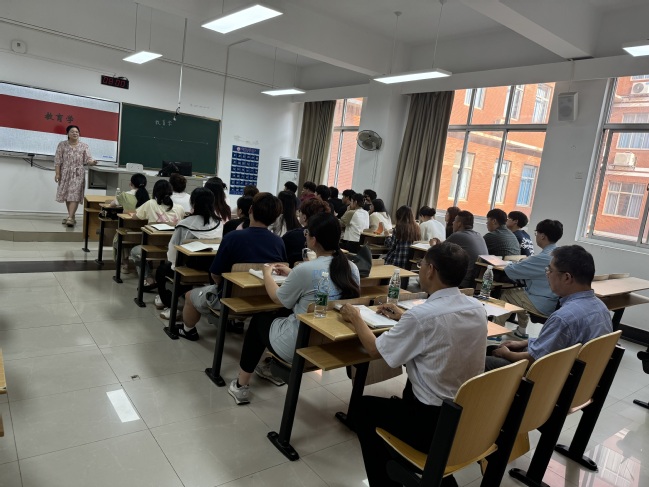 王立新校长来到魏慧敏老师的《教育学》课堂。魏老师在开课前做了充足的准备,课程讲解清晰流畅,教学目标明确,注重理论与实践结合、学科教育与思政教育深度融合,能够践行“开学第一课”对学生的特殊意义。学生们认真听讲、精神饱满,与老师互动积极,教学整体氛围良好。