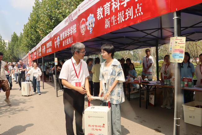 迎新现场,学校党委书记黄军伟、校党委副书记谭忠专门为教科院遭遇特别困难的两位同学送上迎新大礼包,他们与两位同学亲切交谈,了解他们的学习和生活情况,同时勉励他们自强不息、直面困难、不懈努力,并表示学校会努力为他们提供最大限度的帮助,希望他们奋发向上不断进步,努力成为一名优秀的大学生。此外,学院领导、老师走访了新生宿舍,与家长和新生们亲切交流,了解他们的需求和期望,解答生活学业疑问,并鼓励新生勇敢适应新环境、树立新目标、拥抱新生活,在求学路上砥砺前行不辍,矢志不移追梦。