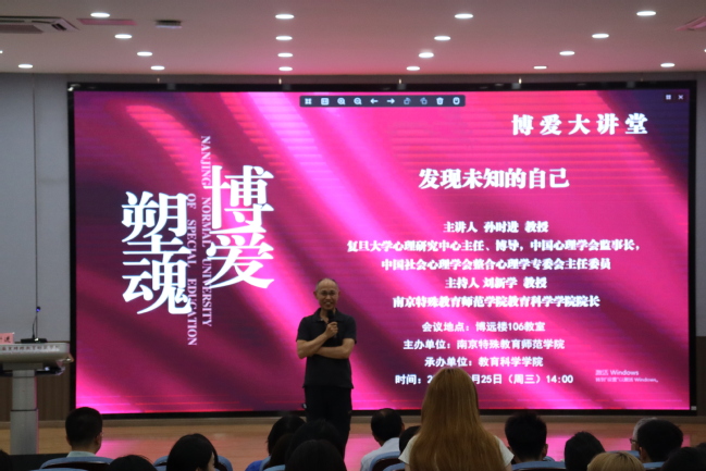 9月25日,复旦大学心理研究中心主任、博士生导师孙时进教授做客博爱大讲堂,做了一场题为“发现未知的自己”的精彩报告。本次报告由德赢VWIN院长刘新学教授主持,德赢VWIN师生线上线下同步参与。