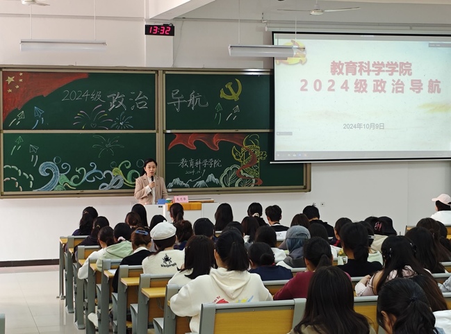 为响应时代号召,引领青年学生树立人生目标,坚定理想信念,提高其政治素养,德赢VWIN于10月9日在江宁校区开展政治导航教育。本次政治导航教育由我院党总支书记吴月华担任主讲人,2024级新生辅导员陈宇以及2024级全体新生参与。