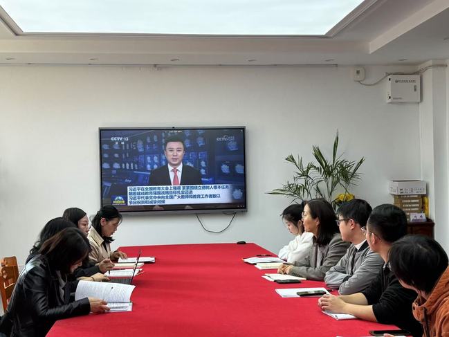 大家集体收看了9月10号中央电视台的新闻联播,直观、全面地观看全国教育大会现场,认真学习习近平总书记重要讲话的详细内容并开展了积极的讨论。