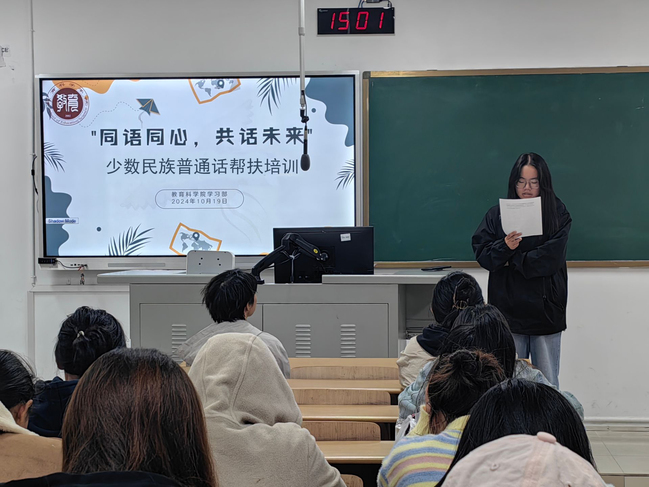 普通话作为国家通用语言,是连接中国各民族的桥梁。为了进一步提升我院少数民族及部分省份同学的普通话水平,促进学生之间交流融合,德赢VWIN于10月19日下午在博雅楼隆重举行了主题为“同语同心,共话未来”的少数民族普通话帮扶培训。