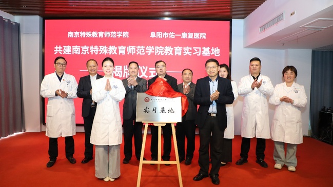 李度主任主持了揭牌仪式,二级调研员桑汤代表市残联热烈欢迎刘新学院长的到来,对实习基地揭牌表示祝贺,并对南京特殊教育师范学院支持阜阳残疾儿童康复教育事业发展表示感谢。