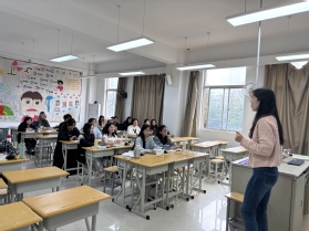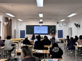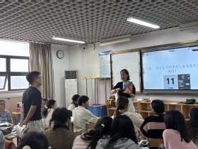 随后,张梦琴老师在实训楼804的《学前儿童数学教育》课程中,运用了情景模拟、动手操作、作品分析等教学方法,使学生们在轻松愉快的氛围中掌握了学前儿童认知几何图形的特点,并潜移默化渗透了对学生问题解决能力的培养。