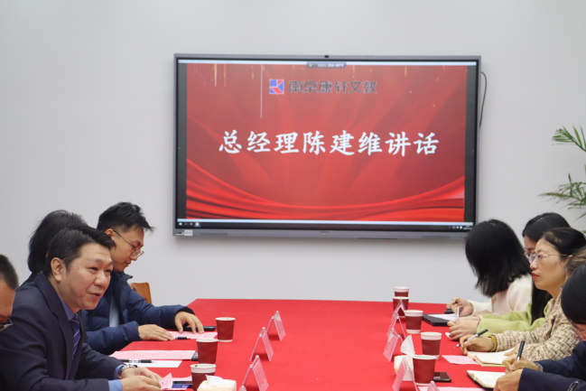 在双方与会人员介绍完毕后,教务处处长范莉莉发表了致辞,代表学校向康轩文教表达了感谢,并指出双方合作将聚焦于数字化和国际化领域。她提到,通过共建学前融合教育实训室,为学生提供实践与成长的平台,推动学前融合教育的创新与发展。期待学院与康轩文教进一步深化合作,共同开发教育产品,培养高素质的教育人才,开启学前融合教育的新篇章。