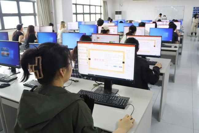 在课件制作模拟考察机房中,同学们围绕主题设计课件。课件充分展示了同学们扎实的PPT制作能力以及信息化素养,动态演示让抽象知识变得具体,分层设计兼顾不同学生的学习需求。