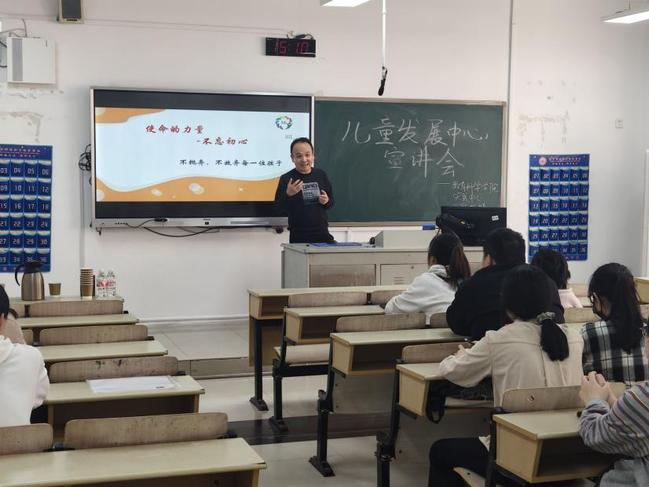 学院特邀七彩梦儿童发展中心主任医师张主任,为同学们带来题为《使命的力量—不忘初心》的专题宣讲招聘会。活动聚焦特殊教育领域前沿实践,助力学子明晰职业方向。