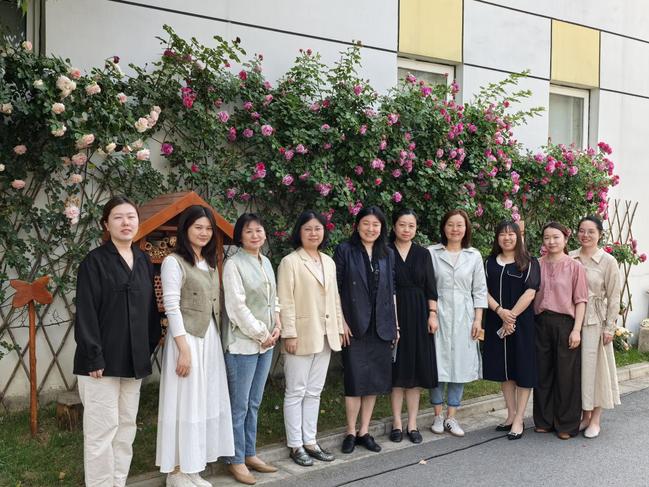漫步校园,沐浴文化。文化润泽,滋养童心。在陆秋慧园长的带领下,教科院教师第一党支部的教师们漫步于“小园子”之中,聆听程甜甜老师(南特学前专业优秀毕业生)娓娓道来特需幼儿种桑树的温馨故事;随后,大家参观了资源教室,深入了解园所资源教室的功能及使用情况。通过一步一景的沉浸式体验,幼儿园里浓厚的“亲自然、享节气、传文脉、润童心”的文化氛围,给大家留下了深刻的印象。
