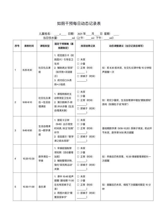 在晴语儿童康复中心等机构,志愿者为有特殊需求的儿童制定个性化的干预方案(如制定如厕干预动态记录表),通过定时提醒、步骤分解演示、正向鼓励等方式,辅助其逐步掌握生活适应技能。