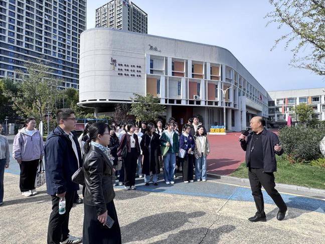 活动在天妃宫小学教导处主任、融合教育资源中心负责人夏金元的热情引领下正式开始。夏主任首先带领师生们漫步校园,实地感受这所百年名校深厚的文化积淀。他详细介绍了学校的起源与办学历史,以及校名随时代变迁经历的十三次变更。夏主任还指出,学校“厚生为本、日新为道”的办学理念,正深深植根于这片悠久的历史沃土,并在校园环境的每一个细节中得到生动体现。